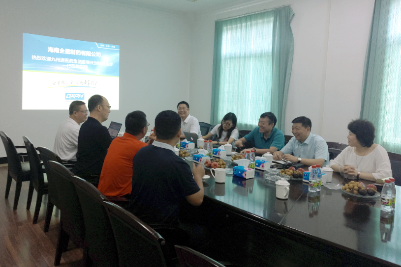 2018年07月25日,九州通醫(yī)藥集團董事長劉樹林先生一行蒞臨海南全星制藥有限公司調(diào)研并指導工作。全星制藥董事長劉全勝先生攜公司領(lǐng)導班子一同參加了座談會,并對劉樹林先生一行的到來表示熱烈的歡迎。雙方就企業(yè)的發(fā)展愿景及醫(yī)藥行業(yè)的發(fā)展前景展開了討論。
